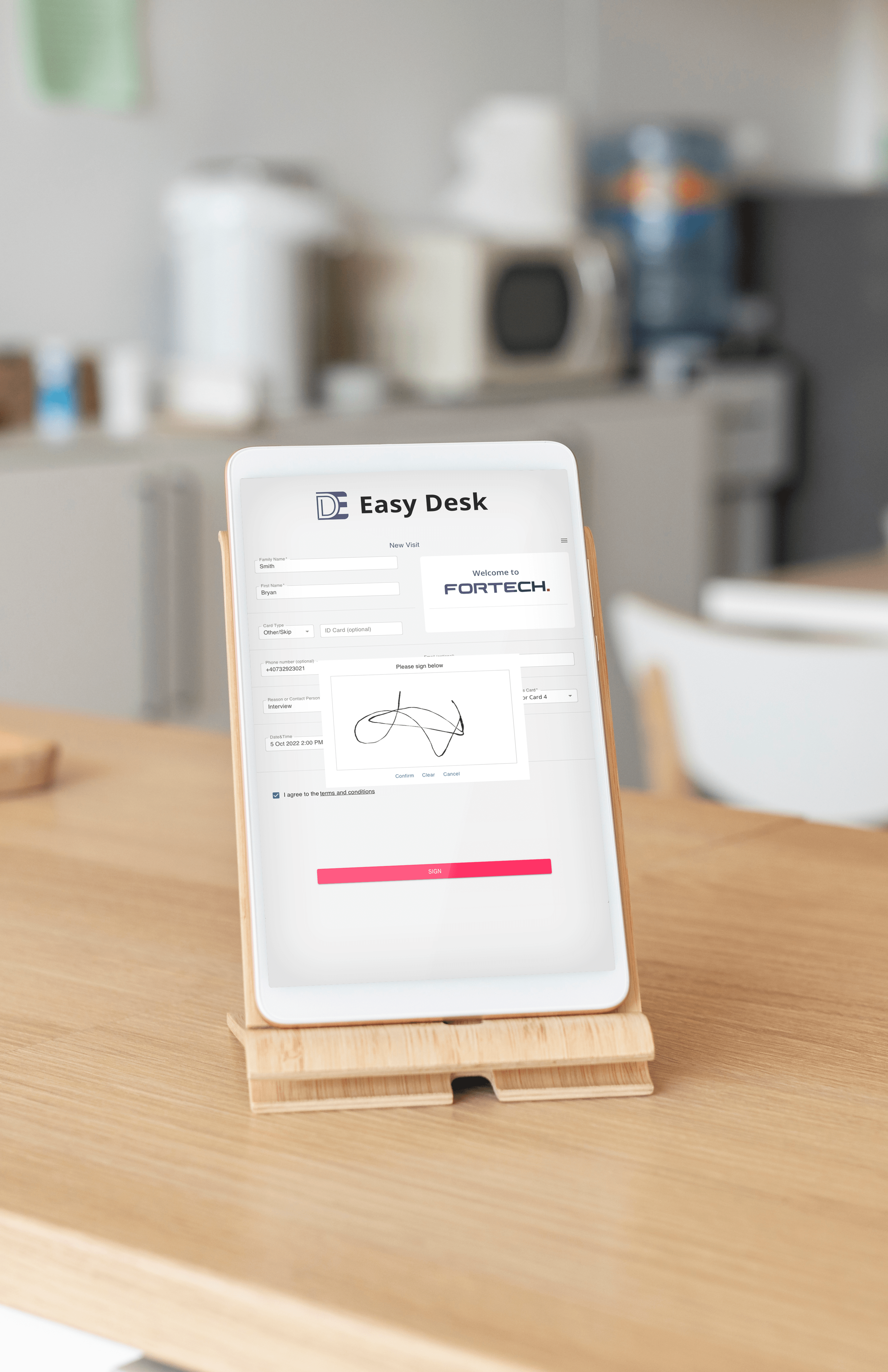 Paper sign-in sheets make it slow and unsafe to welcome visitors – for their data and your premises. With EasyDesk, visitors have quick access and everything stays safe.